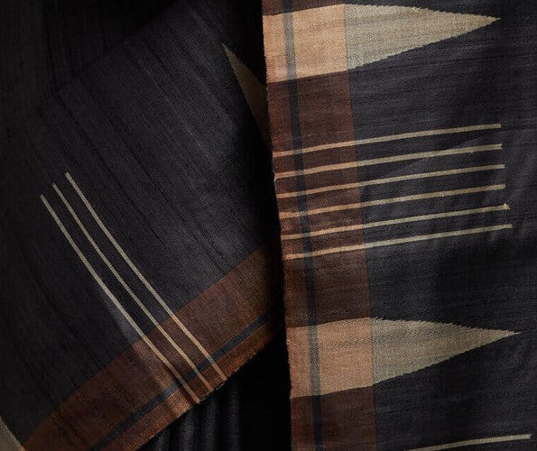 Kosa silk, a revered indigenous silk, takes its name from the affectionate term for the Antheraea Mylitta worm, which spins its cocoons among the Arjun, Saja, and Sal trees of Chhattisgarh's forests. This silk is crafted through various meticulous techniques, intimately connected with the women of the region, who employ the unique ‘Thigh Reeling’ technique to spin the yarn—a skill honed and preserved through generations.